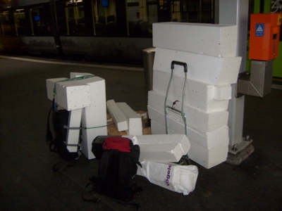 Im Albula Forum haben wir gelesen, dass in Herrenschwanden gratis Sagexkl�tze abzugeben sind. Diese Gelegenheit haben wir (Riccardo und Michael) uns nat�rlich nicht entgehen lassen und sind am 13.03.11 sofort nach Herrenschwanden gefahren. Gleichzeitig konnten wir auch noch gerade ein Diorama vom Taschinasbach in Gr�sch abholen, das Riccardo ebenfalls gratis bekommen hat.